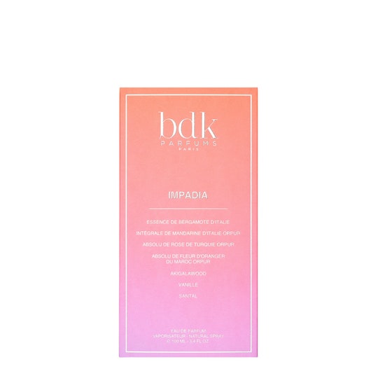 Impadia di BDK Parfums è una fragranza del gruppo Floral Fruity Gourmand unisex. È una nuova fragranza. Impadia è stato lanciato sul mercato nel 2025. Il Naso di questa fragranza è Jordi Fernández. Le note di testa sono Pera, Bergamotto e Mandarino; le note di cuore sono Rosa Bulgara, Rosa Turca e Fiore d'Arancio Africano; le note di base sono Akigalawood, Assoluta di Vaniglia e Sandalo